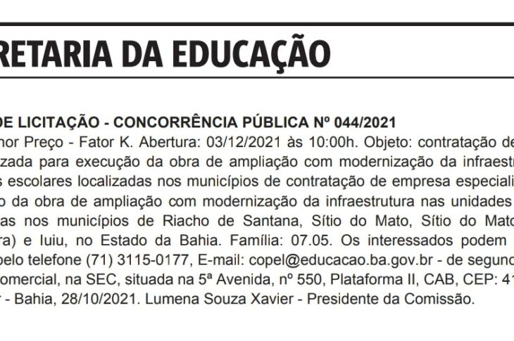 IUIÚ: Licitação define empresa para obra do colégio estadual Jorge Amado