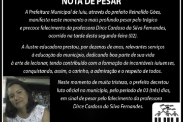 Prefeito de Iuiú decreta luto oficial de 03 dias em sinal de pesar pelo falecimento da professora Dirce
