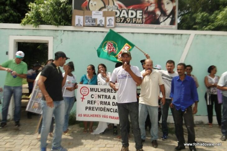 Manifestantes queimam fotos do Relator da Reforma da Previdência em Carinhanha