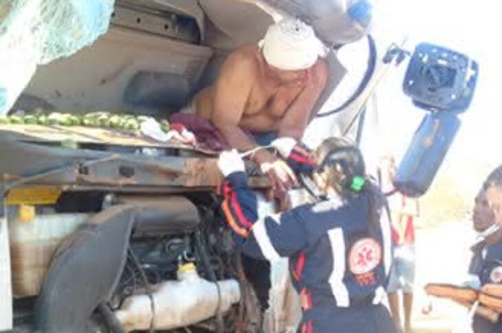 Motorista fica preso às ferragens após caminhão bater em barranco em Montalvânia