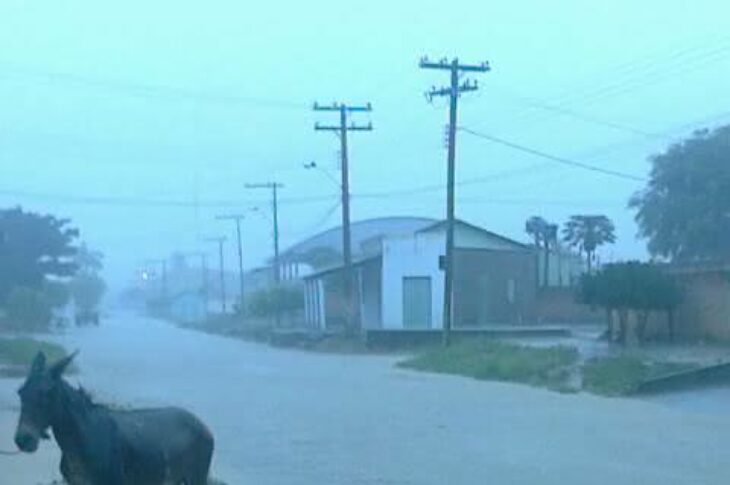 Chuva forte alaga ruas em Juvenília