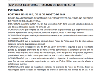 TRE-BA anula multas de prefeito e candidato por suposta propaganda antecipada em Palmas de Monte Alto