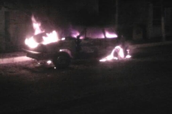 Após acidente carro pega fogo em no centro de Palmas de Monte Alto.
