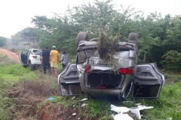 Motorista perde o controle da direção e carro capota na BR-030 em Palmas de Monte Alto