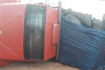 Caminhão carregado com carvão tomba na zona rural de Palmas de Monte Alto
