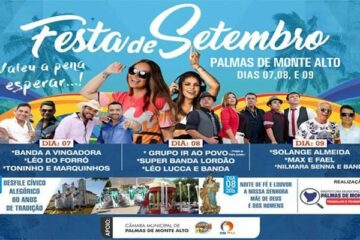 Programação Oficial dos Festejos de Setembro em Palmas de Monte Alto