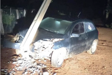 Suspeito de tentativa de homicídio bate carro em poste durante fuga na zona rural de Paramirim