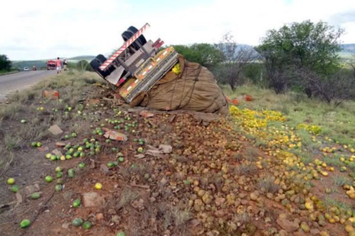 Caminhão carregado com maracujá tomba na BR-030 em Guanambi