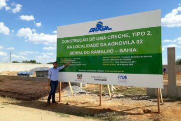 Prefeito de Serra do Ramalho acompanha obras da Creche na Agrovila 2