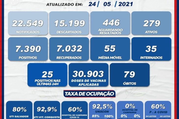 Guanambi registra mais um óbito e 25 novos casos de Covid-19 em 24 horas