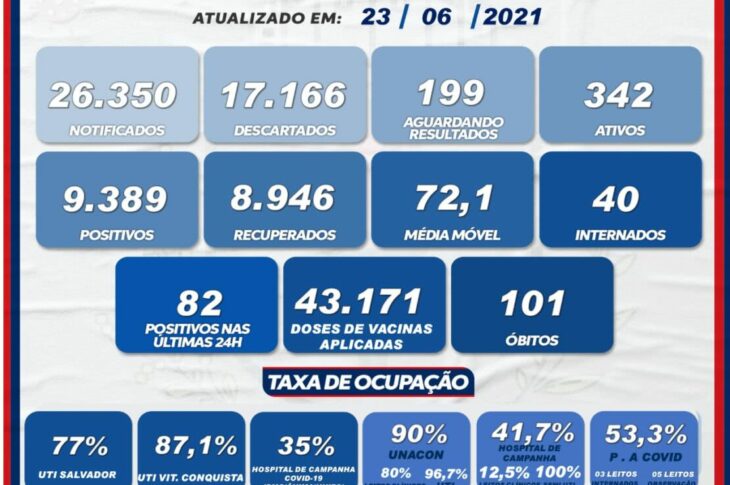 Guanambi registrou 84 novos casos e um óbito por Covid-19 nas últimas 24 horas