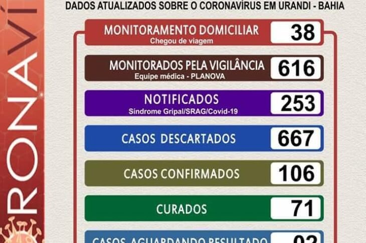 Urandi contabiliza 106 casos confirmados de coronavírus