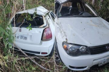 Homem morre e outras duas pessoas ficam feridas após carro capotar na BA-262, em Anagé
