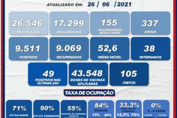 Guanambi registra 22 novos casos da Covid-19 e um óbito nas últimas 24 horas