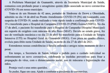 Mais um óbito por Covid-19 é registrado em Guanambi nas últimas 24 horas