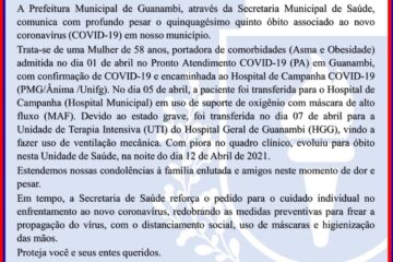 Quinquagésimo quarto óbito por complicações da Covid-19 é registrado em Guanambi