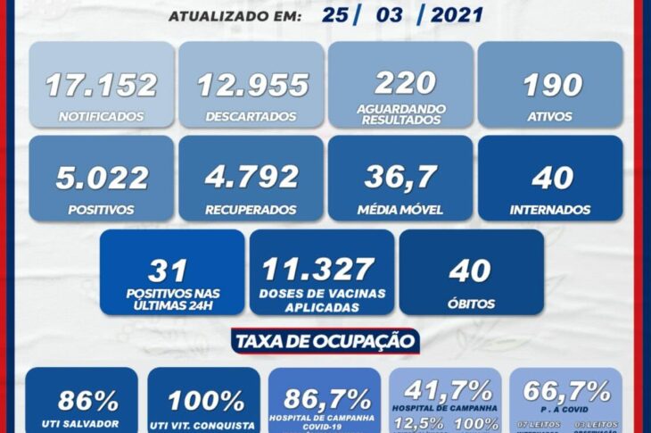 Guanambi registra quadragésimo óbito por complicações da Covid-19 e 27 casos nas últimas 24 horas