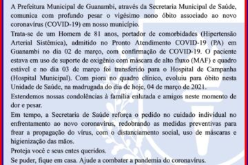 Trigésimo terceiro óbito por complicações da Covid-19 é registrado em Guanambi