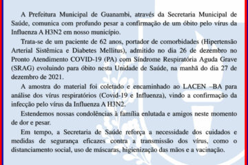Guanambi registra o primeiro óbito por Influenza A H3N2