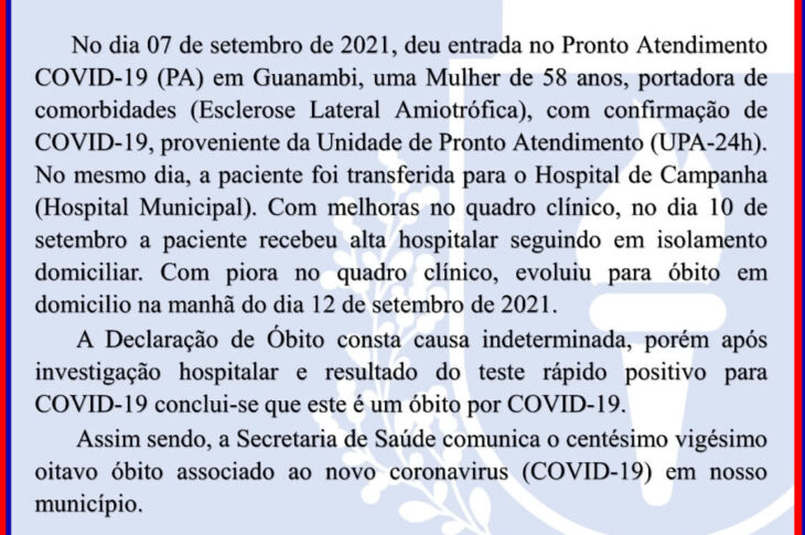 Guanambi chega a 128 mortes provocadas pela covid-19