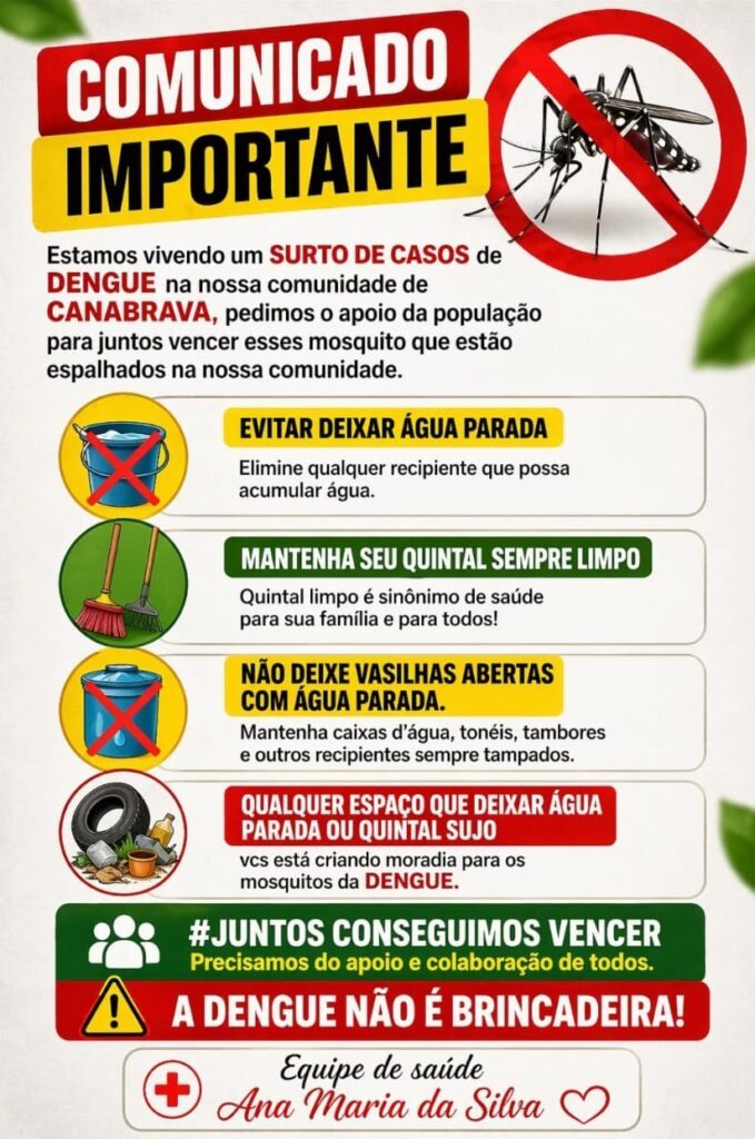 MALHADA — O secretário municipal de Saúde de Malhada, Ricardo Dias, alertou a população do distrito de Canabrava sobre a necessidade de reforçar as medidas de prevenção contra a dengue, diante do aumento de casos suspeitos na localidade.