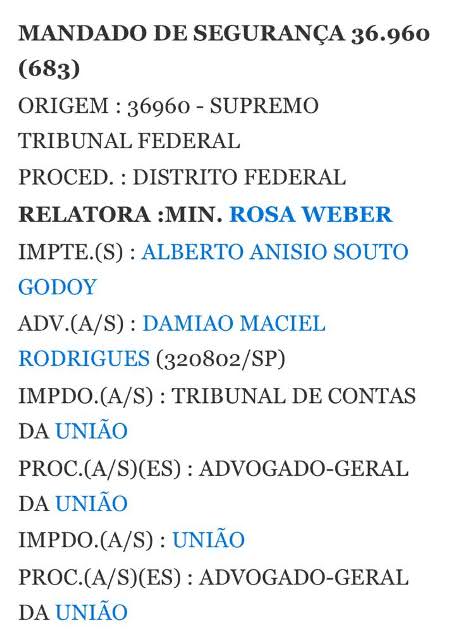 De acordo com Weber, Godoy repetiu o mandado de segurança nº36911, este expedido no dia 6 de fevereiro. Ela ainda cita que a jurisprudência da Suprema Corte é firme no sentido de que o mandado de segurança deve ser impetrado com todas as provas necessárias à demonstração das circunstâncias de fato embasadoras da controvérsia.