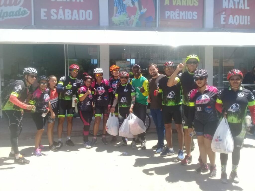 Os ciclistas arrecadaram nos comércios 580 quilos de alimentos e o valor de R$ 618,00 (seiscentos e dezoito reais), que será convertido em cestas básicas.