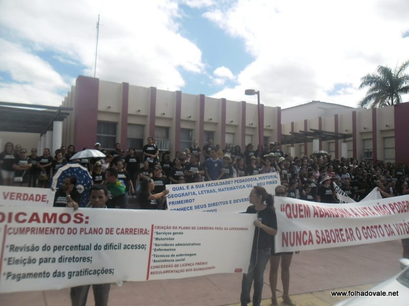 Com palavras de ordem e faixas os servidores percorreram as principais vias públicas da cidade passando defronte pela Praça dos Três Poderes, finalizando a mobilização defronte a Prefeitura de Carinhanha, aonde cantaram o Hino Nacional e musicas de protestos.