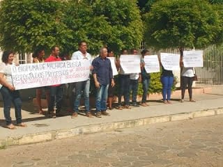 Servidores de Malhada afastados realizam protestos em frente ao Fórum de Carinhanha