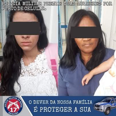 Duas mulheres suspeitas de terem furtado um celular foram presas por policiais da Companhia de Emprego Tático Operacional (CETO) do 17º Batalhão da Polícia Militar, na manhã desta segunda-feira (18),na rodoviária de Guanambi, no Sudoeste da Bahia.