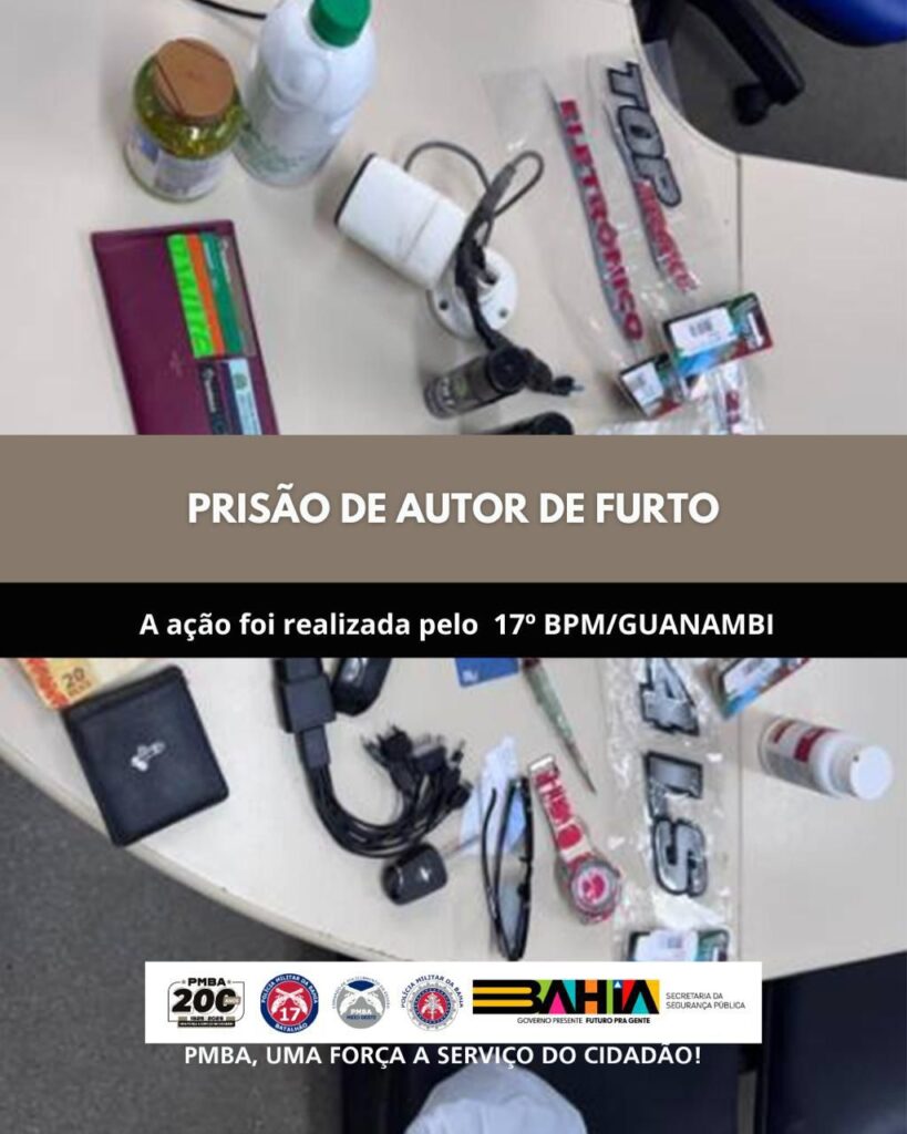 GUANAMBI — Uma ação conjunta entre as polícias Militar e Civil prendeu, na manhã desta segunda-feira (24), um homem de 35 anos, no bairro Monte Pascoal, suspeito de realizar um furto na Unidade de Pronto Atendimento (UPA 24h), na cidade de Guanambi, na região sudoeste da Bahia.