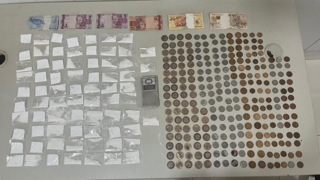 Após monitoramento, os policiais confirmaram a veracidade das denúncias. Ao perceber a aproximação das guarnições, o suspeito tentou se desfazer do material ilícito, mas foi rapidamente abordado e contido. Com ele, foram apreendidos cerca de 120 gramas de substância análoga à cocaína, uma balança de precisão e R$ 216,15 em dinheiro.