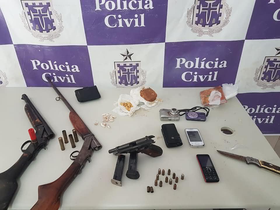 Participaram da operação denominada de “Faro Fino”, policiais Civil, Militar, Cipe/Cerrado, Rondesp, Graer e a equipe da DTE de Irecê. Na operação foi apreendidas substâncias como: crack, cocaína, 03 armas de fogo (2 armas longas e 1 PT 380), 01 cofre, 05 notas promissórias, 02 cadernetas com anotações.