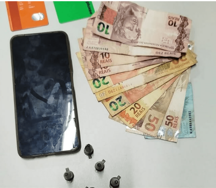 Diante da atitude suspeita, foi realizada a abordagem policial, seguida de busca pessoal e veicular, sendo localizados seis (06) pinos de substância análoga à cocaína, escondidos no pisca-seta da motocicleta. Também foi encontrada com o abordado a quantia de R$ 320 em espécie, composta por 01 nota de R$ 100; 02 notas de R$ 50; 04 notas de R$ 20 e 04 notas de R$ 10, além de 02 cartões e 01 aparelho celular.