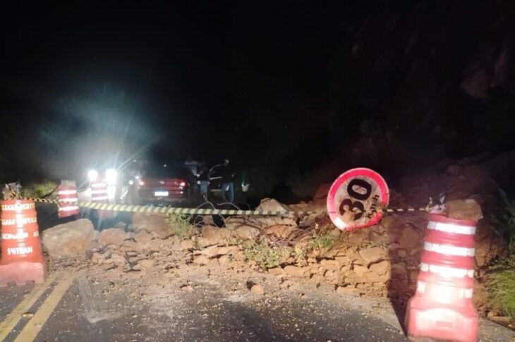 Desmoronamento de pedras provoca bloqueio temporário na BR-030, em Guanambi