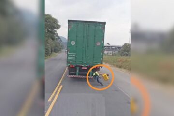 Homem que pegava carona em traseira de caminhão cai em rodovia; VÍDEO