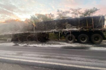 Carreta carregada com cimento pega fogo na BR-030 entre Caetité e Guanambi