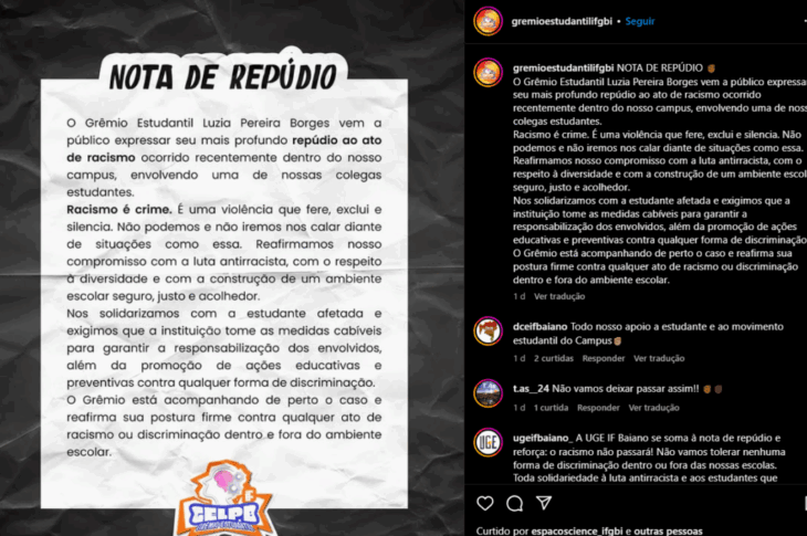 Estudantes denunciam racismo no IF Baiano — Campus Guanambi