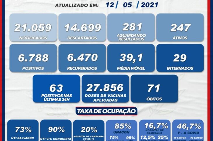 Guanambi registra 13 casos de Covid-19 nas últimas 24 horas