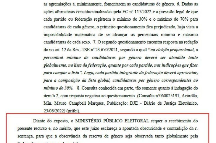 MPE recorre contra registro de candidaturas do PT por descumprimento à cota de gênero em Iuiu