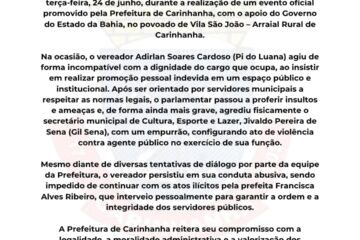 Prefeitura de Carinhanha repudia agressão de vereador a secretário durante evento oficial