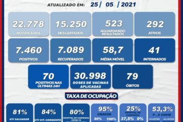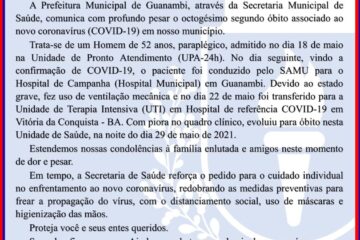 Guanambi registrou um óbito e 66 casos de Covid-19 nas últimas 24 horas