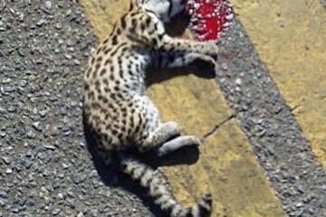 Filhote de jaguatirica morre atropelado na BR-030, em Malhada