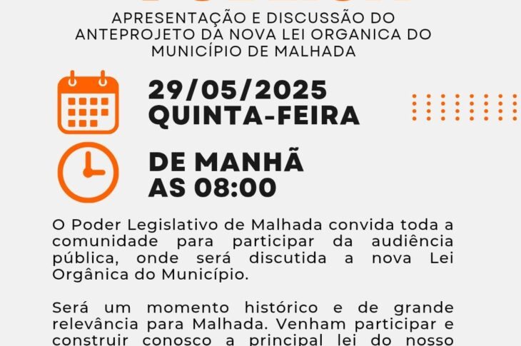 Presidente da Câmara de Malhada convida a população para apresentação do anteprojeto da nova lei orgânica