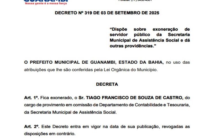 Prefeitura de Guanambi exonera malhadense suspeito de desviar mais de 500 mil reais