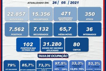Guanambi registrou um óbito e 102 casos de Covid-19 nas últimas 24 horas