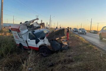 Ambulância do SAMU capota na BR-242, em Luís Eduardo