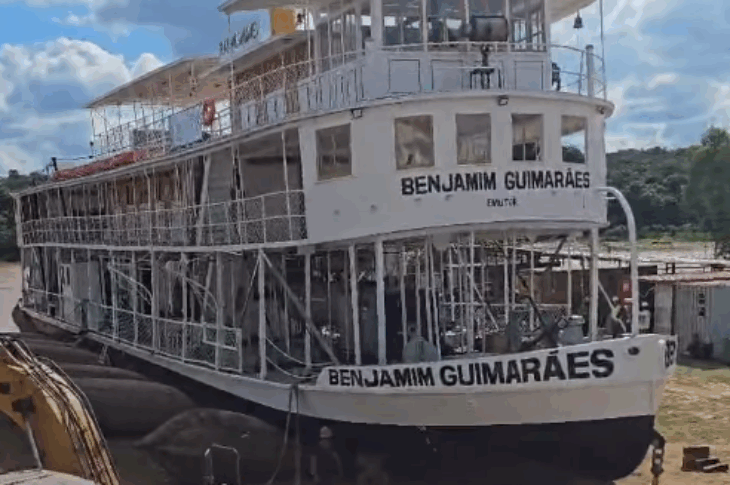 Vapor Benjamim Guimarães toca água do Velho Chico após 10 anos de reforma, em Pirapora