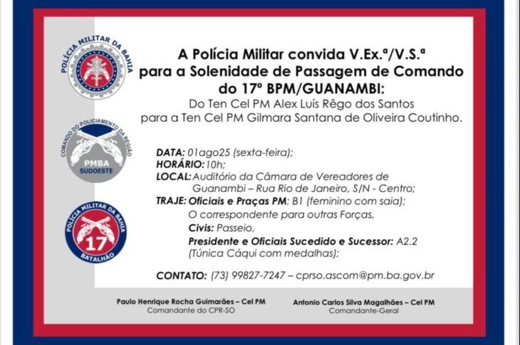 PMBA realizará troca de comando do 17º BPM no próximo dia 1º de agosto