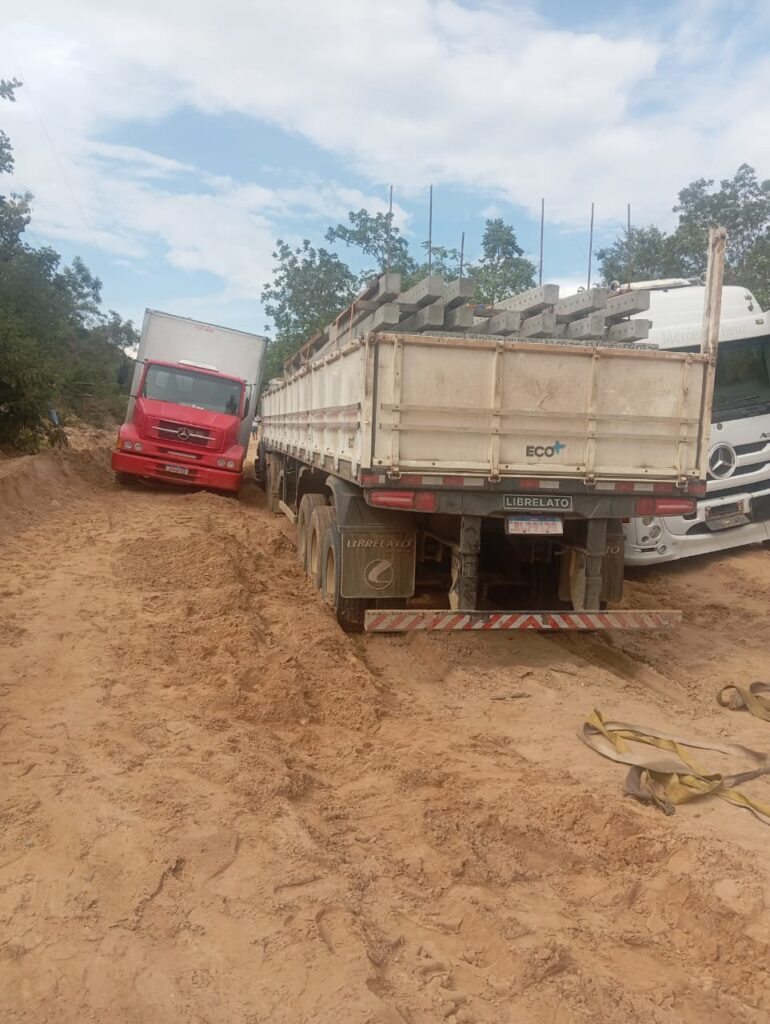 A situação é classificada como “horrível” por condutores que trafegam diariamente pelo local, principalmente transportando alimentos e outros produtos. Na manhã desta segunda-feira (2), uma longa fila de veículos atolados se formou na estrada, agravando ainda mais os prejuízos.